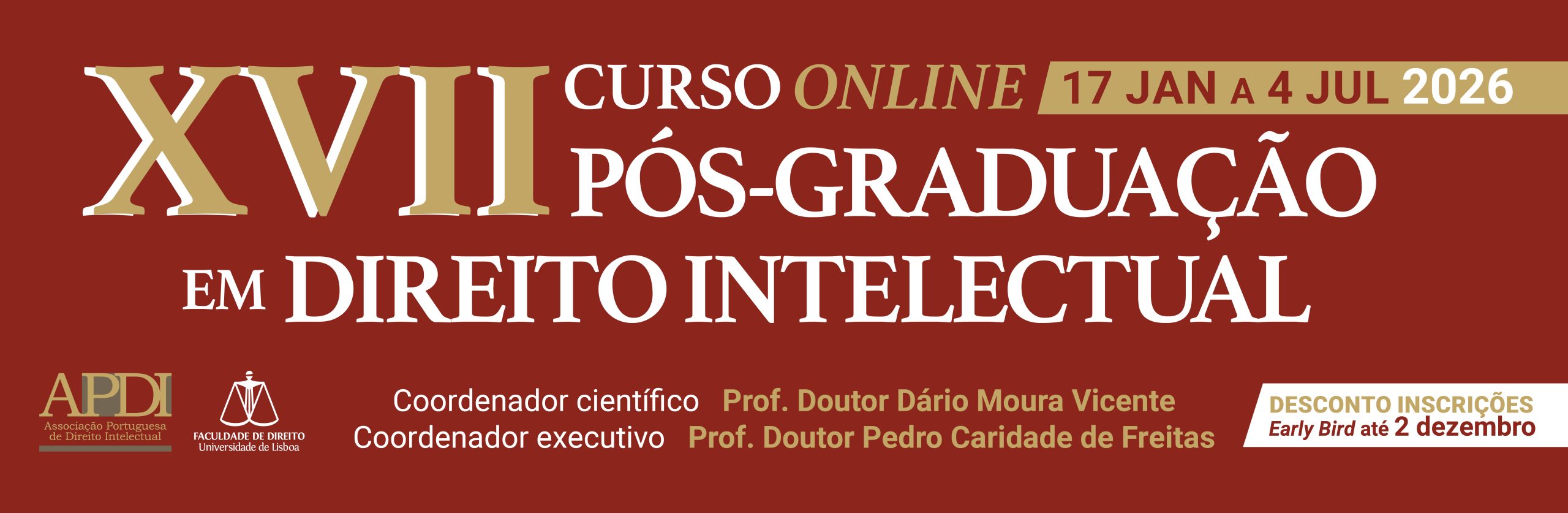A Associação Portuguesa de Direito Intelectual (APDI), em parceria com a Faculdade de Direito da Universidade de Lisboa, promove em 2026 o XVII Curso de Pós-Graduação em Direito Intelectual, que decorrerá entre 17 de janeiro e 4 de julho de 2026, em formato exclusivamente online.